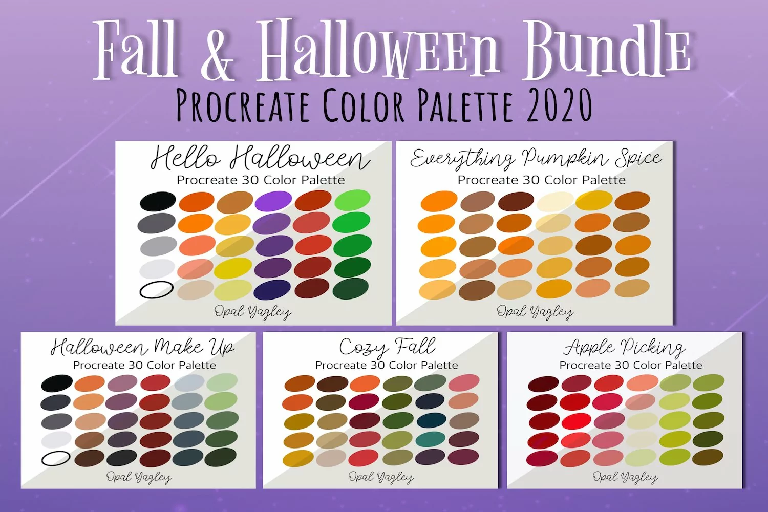 Fall Autumn Halloween Bundle Procreate Color Palette - 150 Colors includes 5 favorite fall/ autumn/ Halloween activities