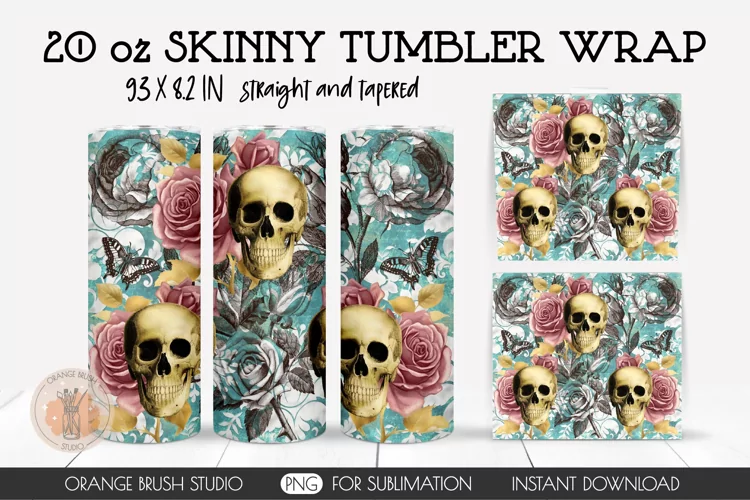 ♥ This Gothic Skull and Rose Skinny Tumbler Wrap is explicitly designed for Sublimation projects or for printing.