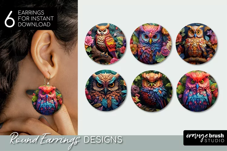 3D Earrings bundle, 3D Owl Round Earrings Sublimation Design