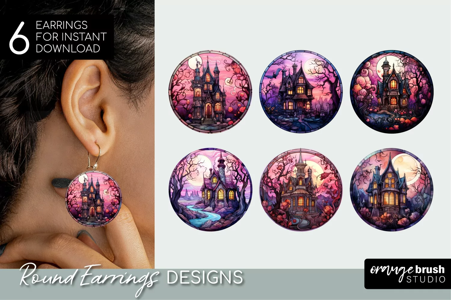 Round Earrings Spooky House Sublimation Earrings Halloween Earrings Bundle Earrings Sublimation Stained Glass Sublimation Earring Sublimation Designs Halloween Earrings Png Stained Glass Halloween Haunted House Sublimation Designs