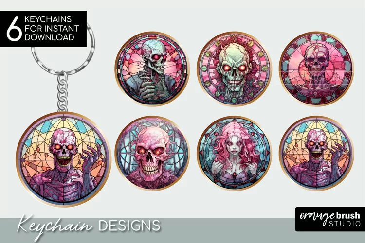 Zombie Halloween Keychain Sublimation Bundle Stained Glass