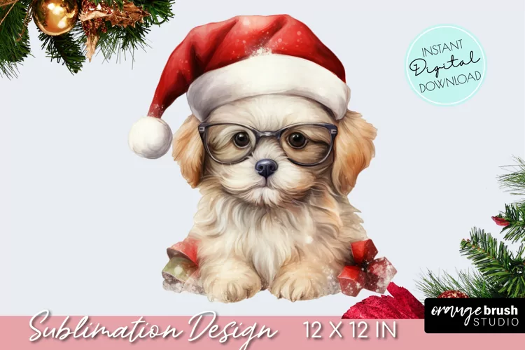 Christmas Puppy Sublimation Design, Cute Dog Clipart