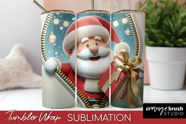 3D Christmas Skinny Tumbler Wrap, Zip Wall Santa Sublimation
