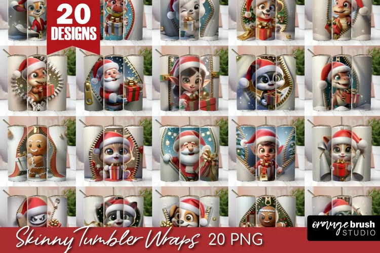 Similar Design Products to 3D Christmas Tumbler Wrap Bundle, Zip Wall Sublimation PNG