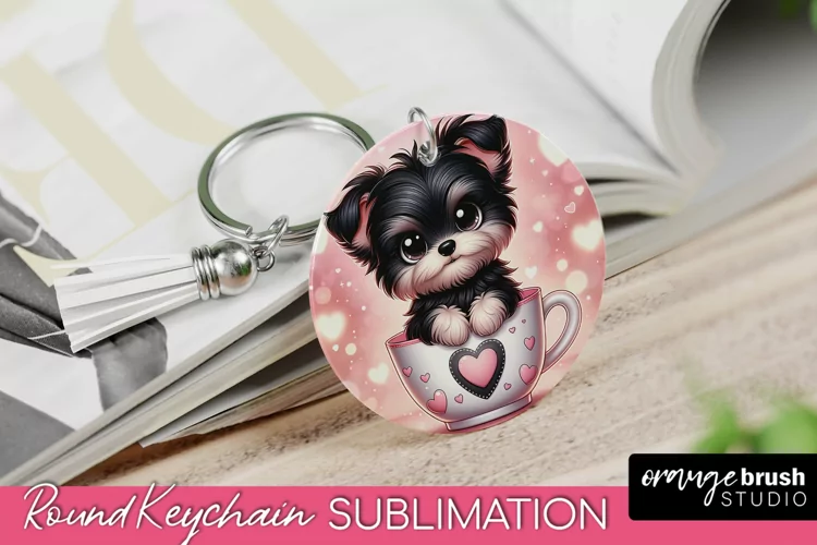 Valentine Dog Keychain - Cute Round Sublimation Design