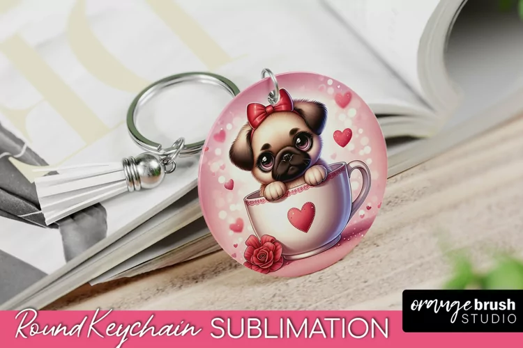 Valentine's Day Dog Keychain Sublimation, Round Keychain PNG