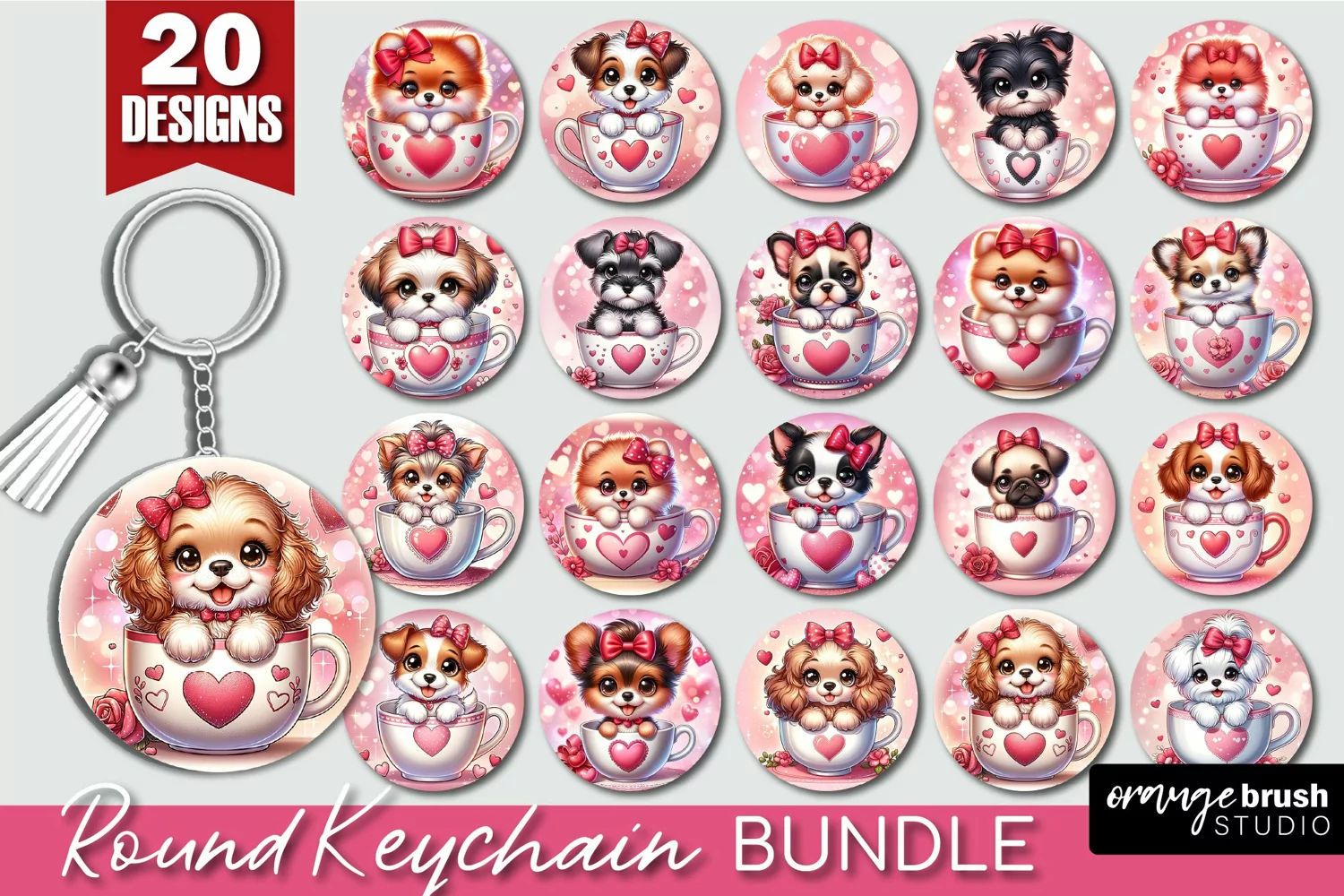Valentine Keychain Bundle, Dog Round Keychain Sublimation