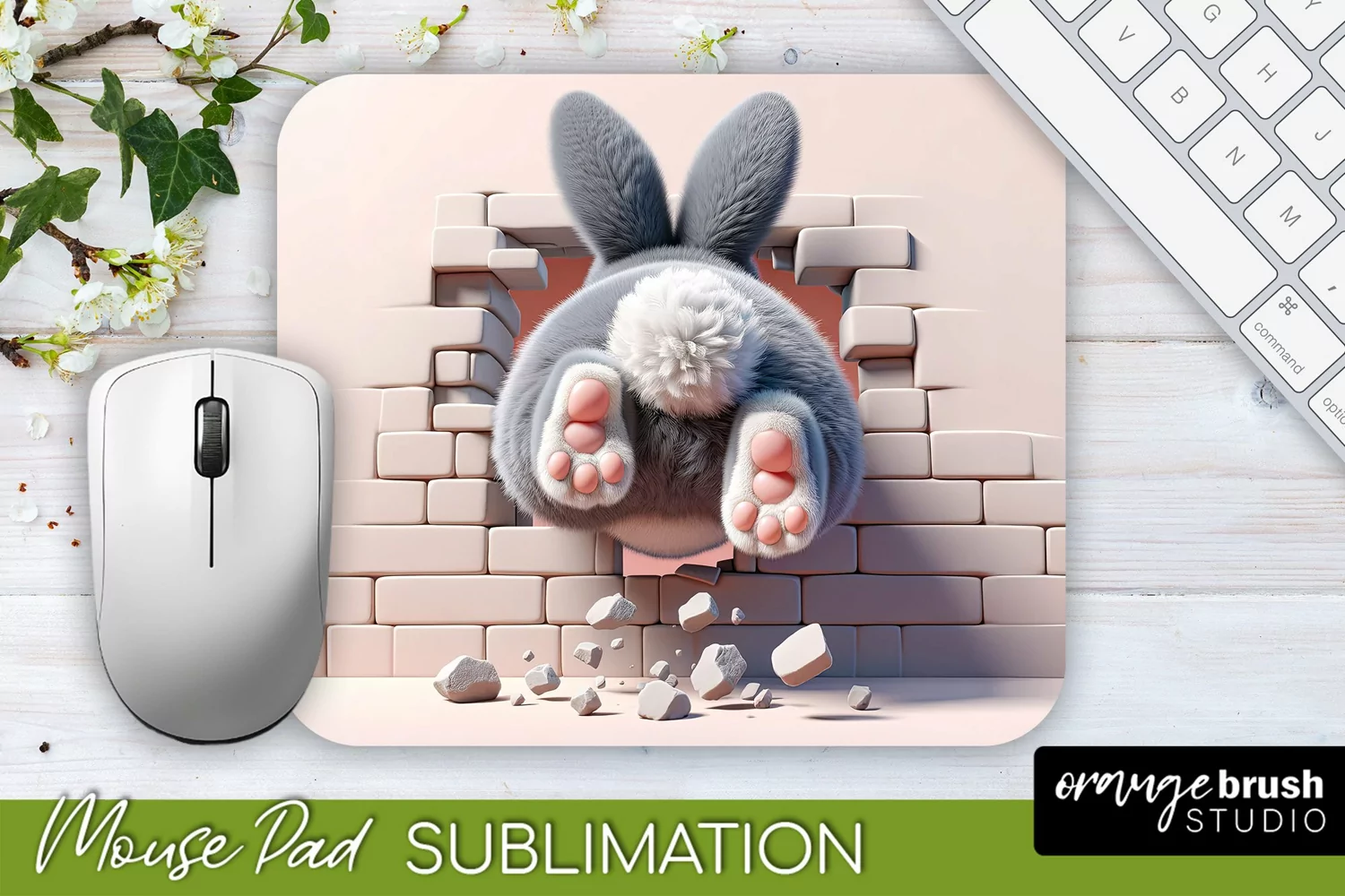 Easter Mousepad Sublimation Design - 3D Bunny Hole in Wall