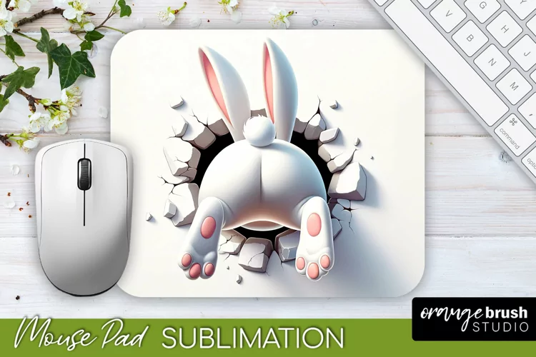 Easter Mousepad Sublimation, 3D Hole in Wall, Easter Bunny