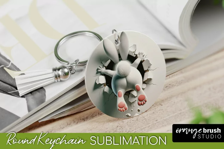 Easter Bunny Round Keychain Sublimation - 3D Hole in Wall