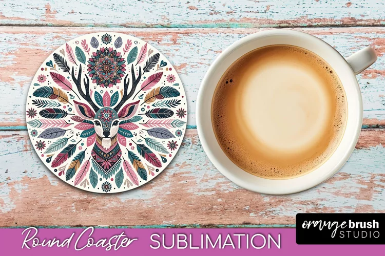Mandala Coaster Design, Deer Round Coaster Sublimation