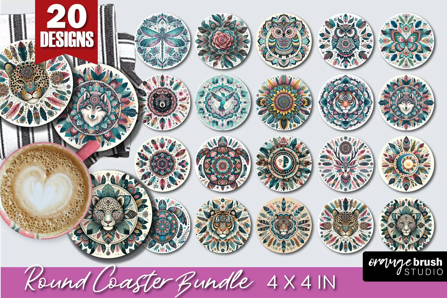 Animal Mandala Boho Sublimation Car Coaster Coaster Bundle Mandala Sublimation Coaster Sublimation Round Coasters Mandala Coaster Round Coaster Png Boho Coaster Png