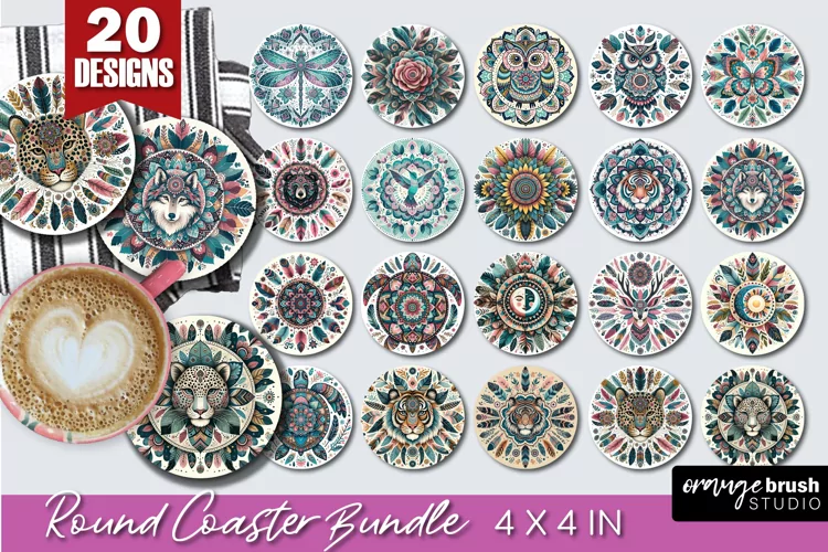 This Mandala Round Coaster Bundle is incredibly easy to use - just download, print, and apply to your preferred material.