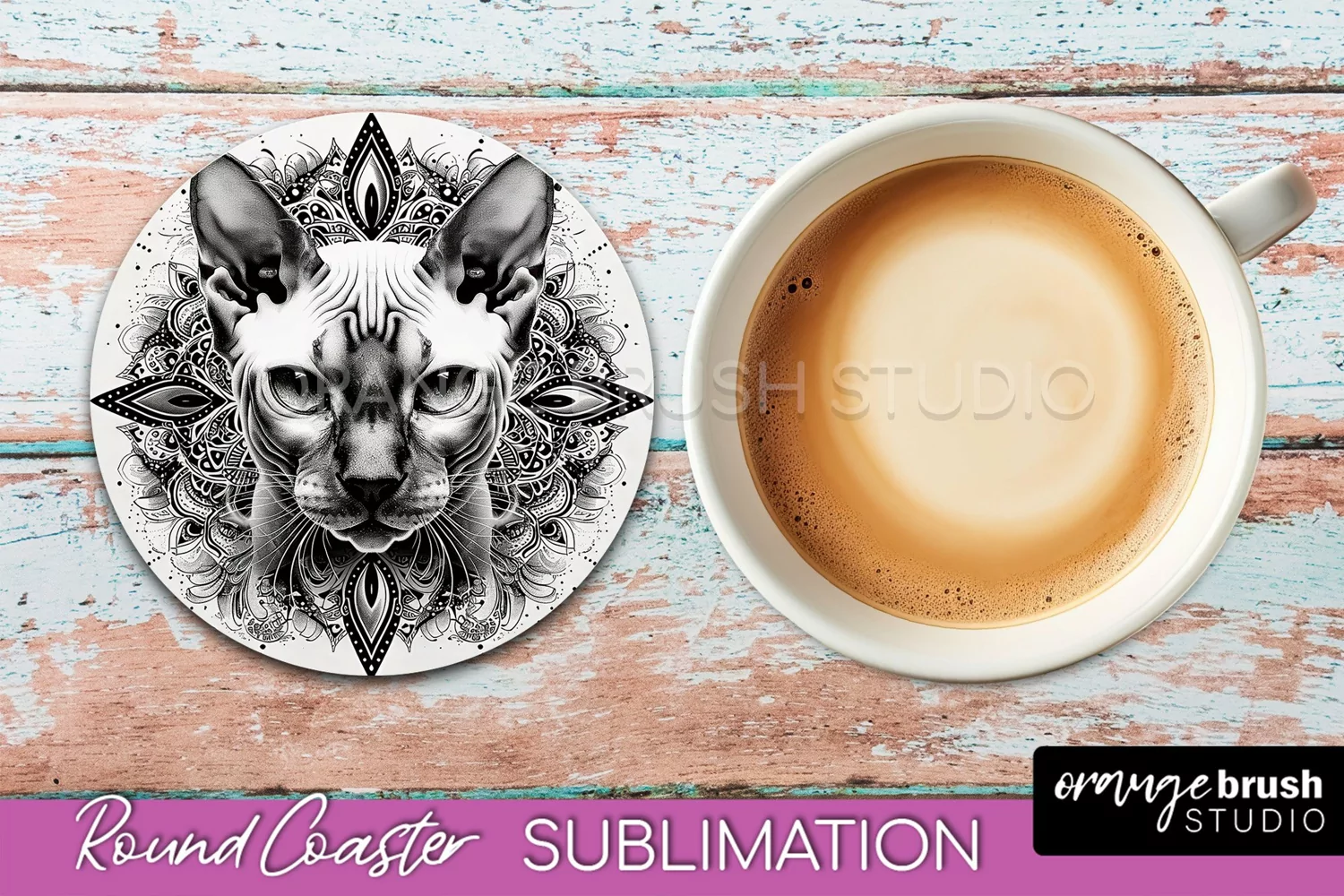 Elevate your home decor with our charming Cat Mandala Coaster Sublimation Design!