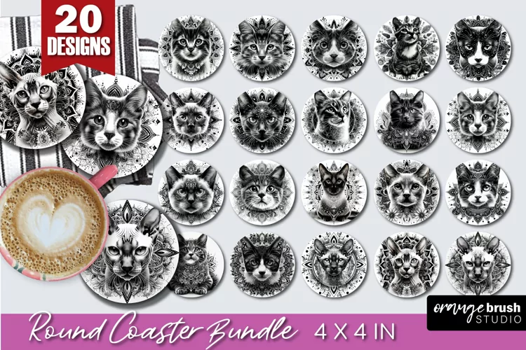 ✦ YOU RECEIVE 20 Cat Mandala Coaster designs
