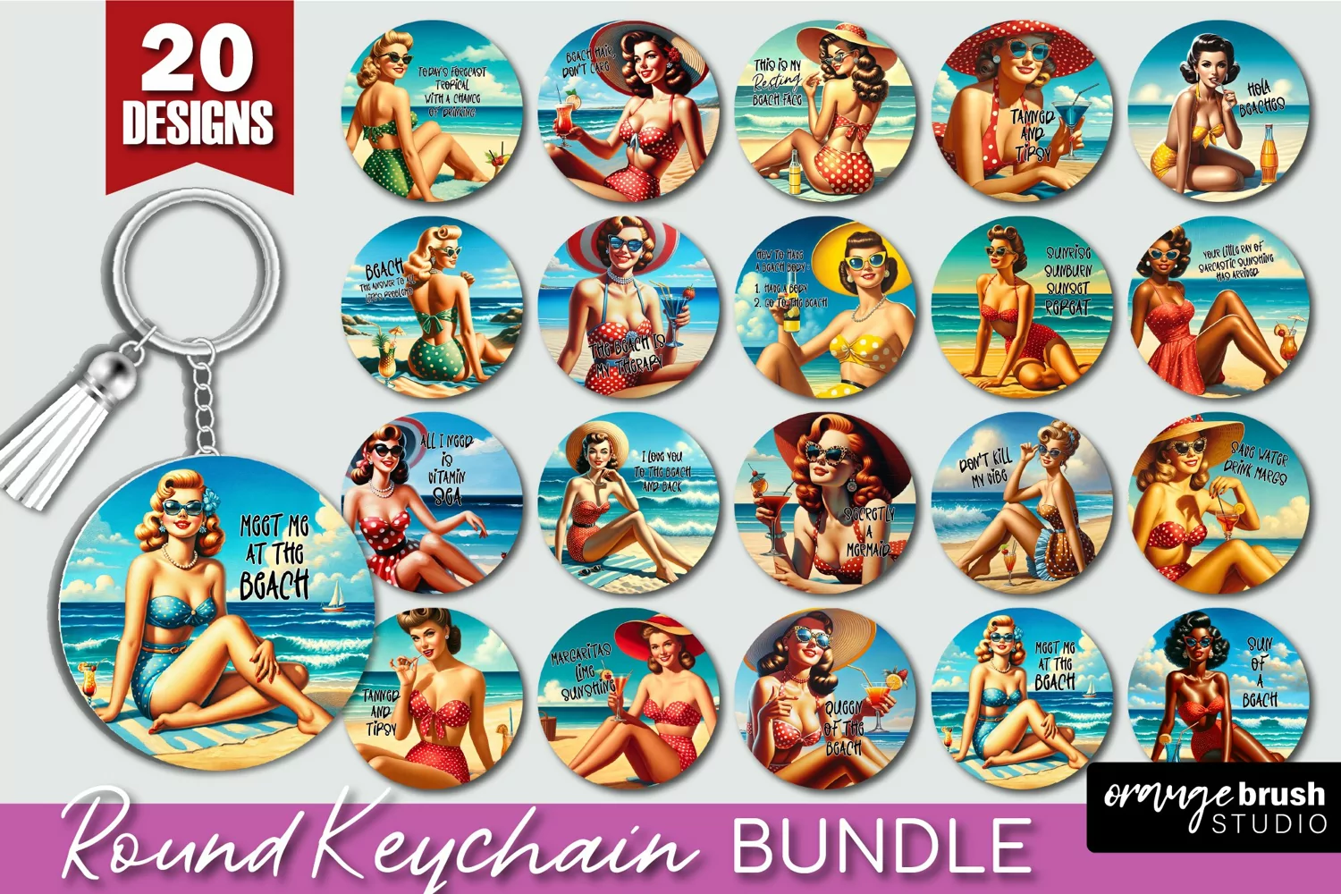 Pin Up Girl Keychain - Beach Keychain Sublimation Bundle