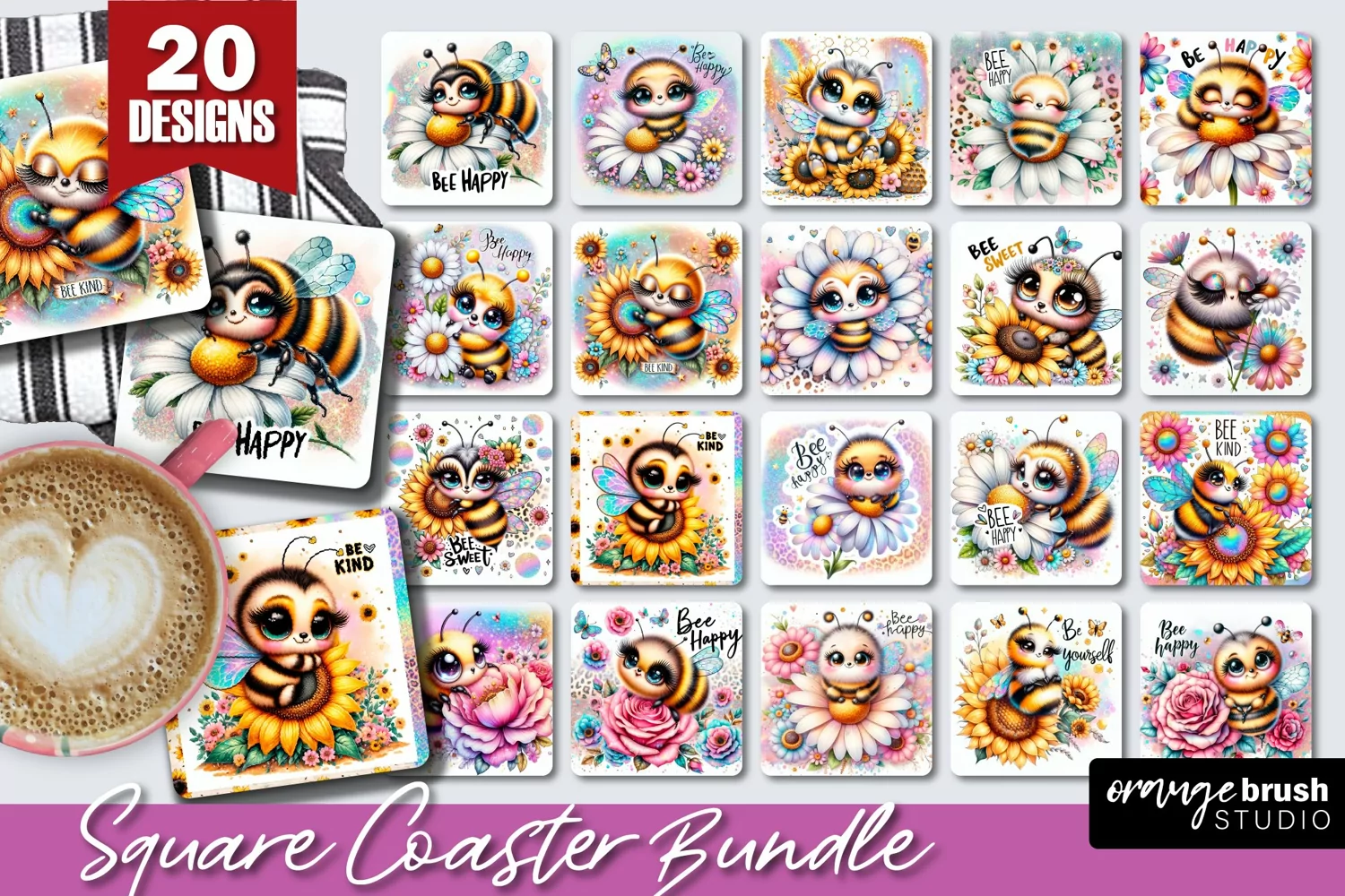 Bee Square Coaster Bundle - Inspirational Quote Sublimation