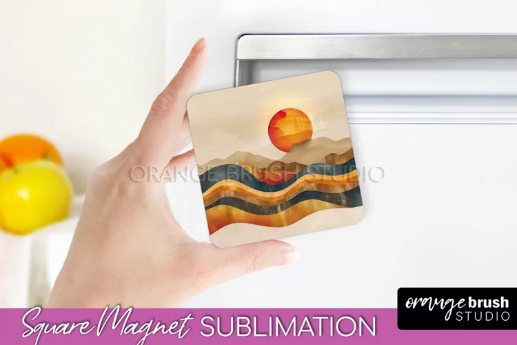 Boho Magnet Sublimation, Minimalist Landscape Magnet Design