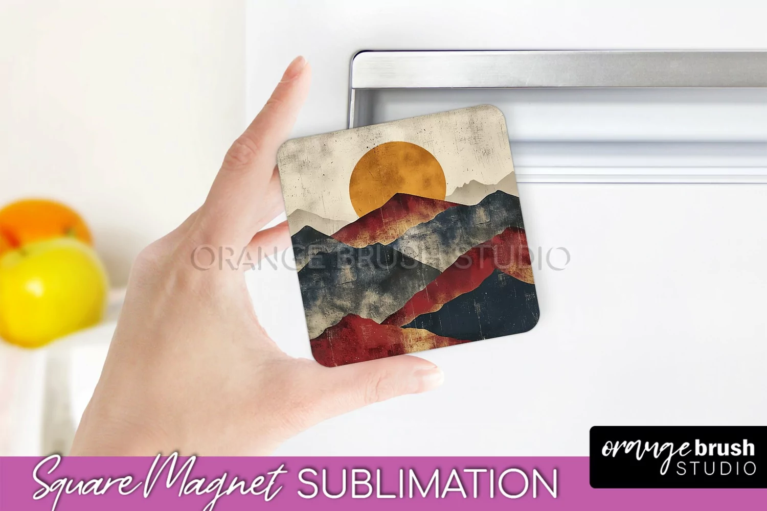 Boho Magnet Sublimation, Minimalist Landscape Magnet Design