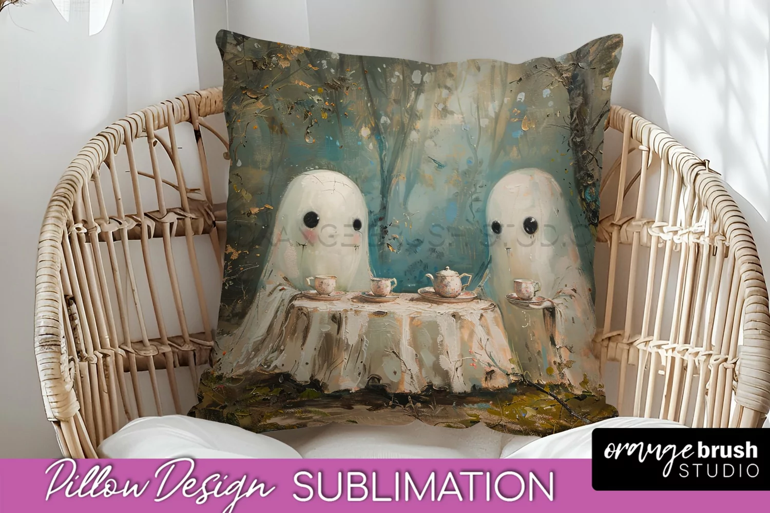 Halloween Pillow Cover - Cute Ghost Pillow Sublimation example image 1