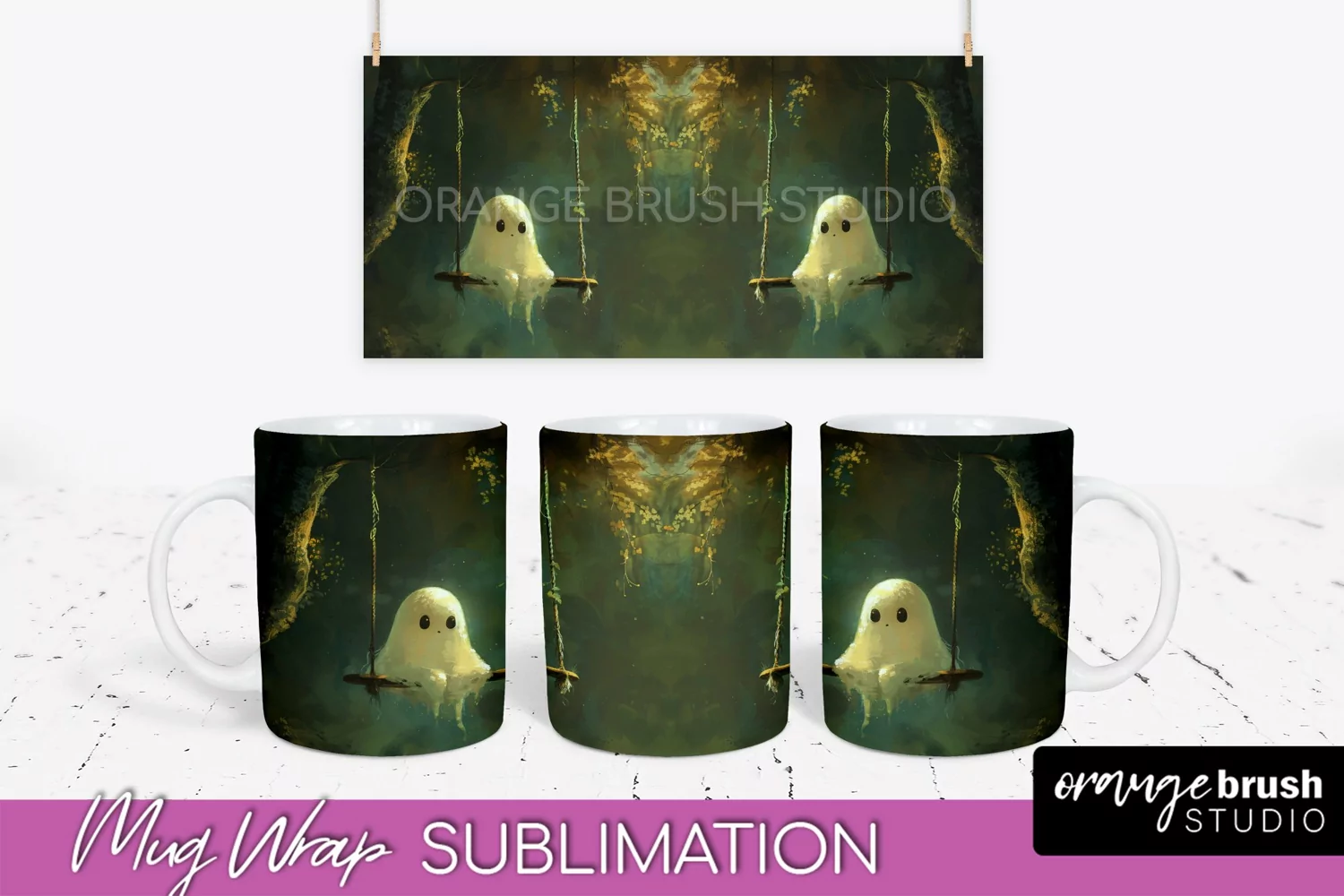 Ghost Mug Wrap - Vintage Halloween Mug Sublimation Design example image 1