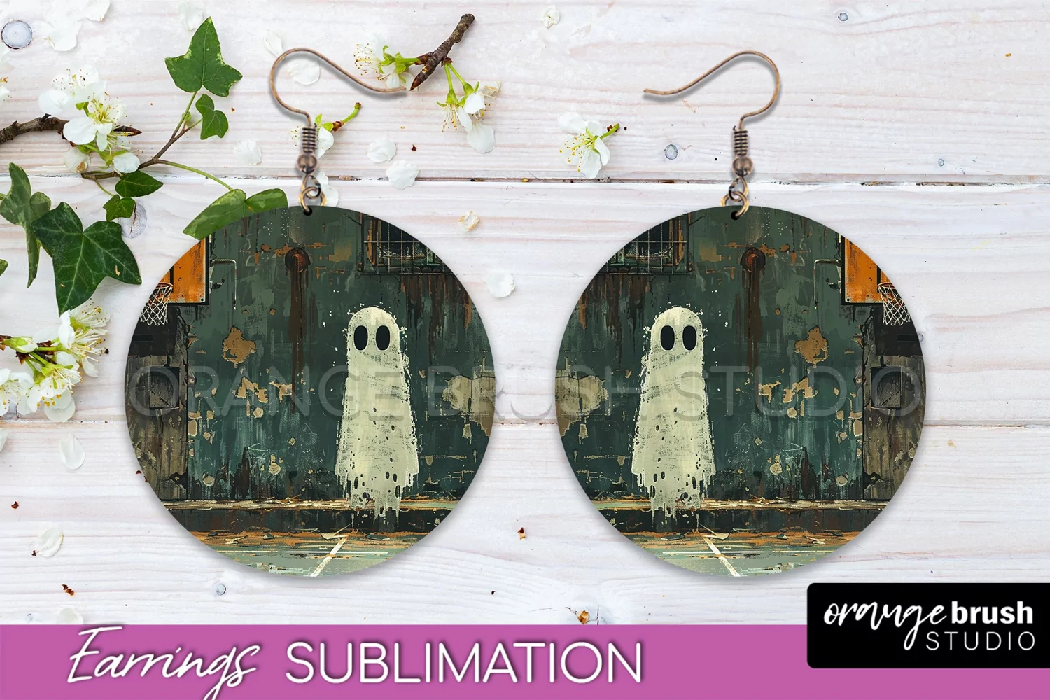 Halloween Earrings - Cute Ghost Round Earring Sublimation example image 1
