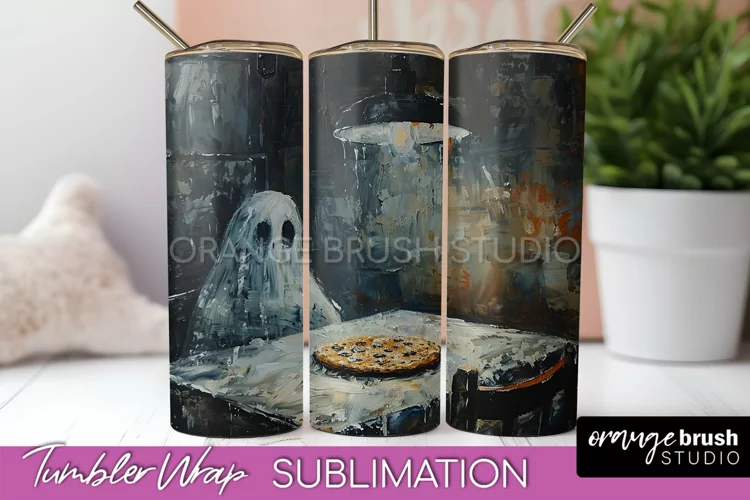 Ghost Tumbler Wrap - Vintage Halloween Tumbler Sublimation example image 1