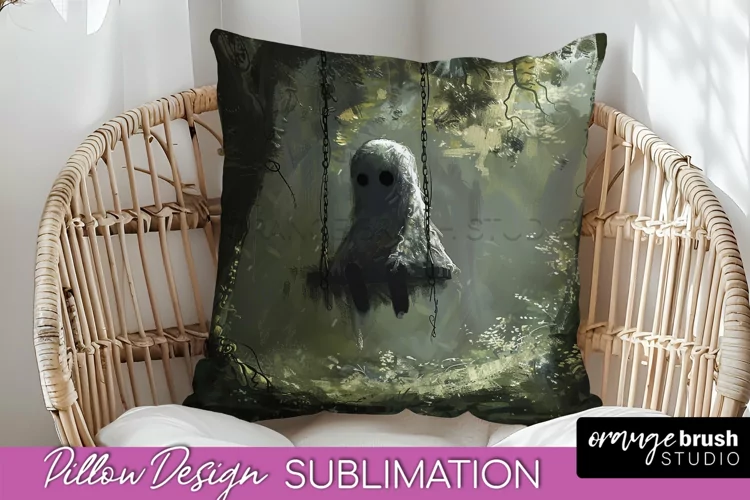 Halloween Pillow Cover - Cute Ghost Pillow Sublimation example image 1