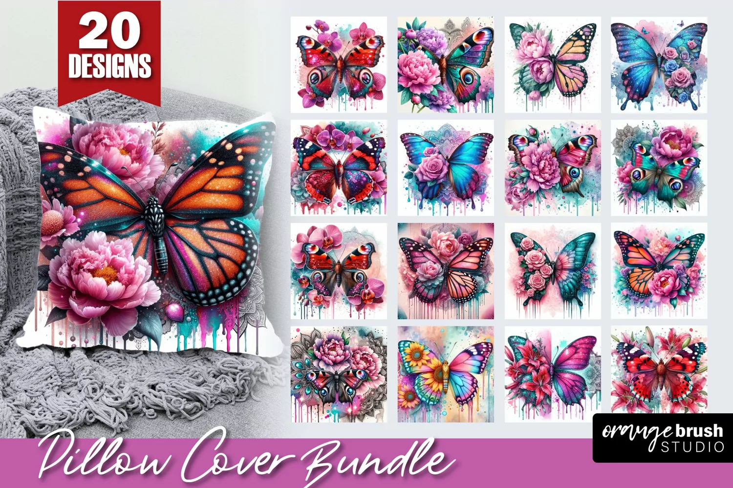 Floral Butterfly Pillow Cover Sublimation Bundle