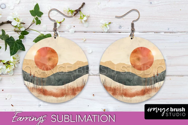 Mountain Landscape Earrings Sublimation Abstract Earrings Design Round Earrings Png Boho Earrings Sublimation Boho Round Earrings Minimalist Earrings Sublimation Landscape Earrings Boho Modern Earrings Modern Boho Earrings