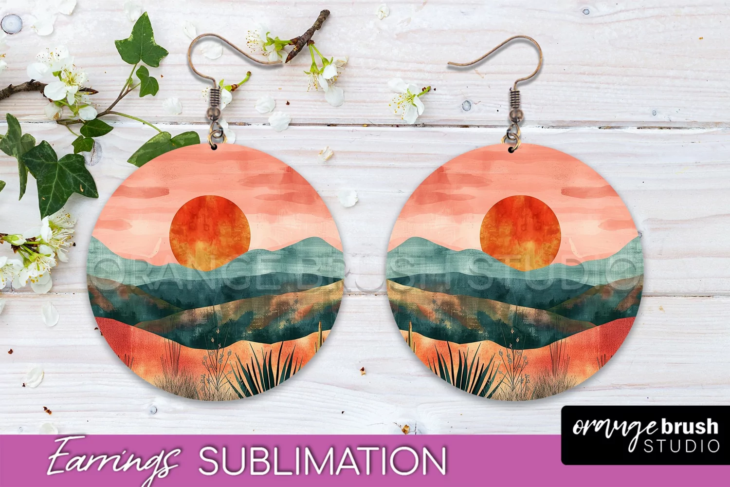 Mountain Landscape Earrings Sublimation Abstract Earrings Design Round Earrings Png Boho Earrings Sublimation Boho Round Earrings Minimalist Earrings Sublimation Landscape Earrings Boho Modern Earrings Modern Boho Earrings