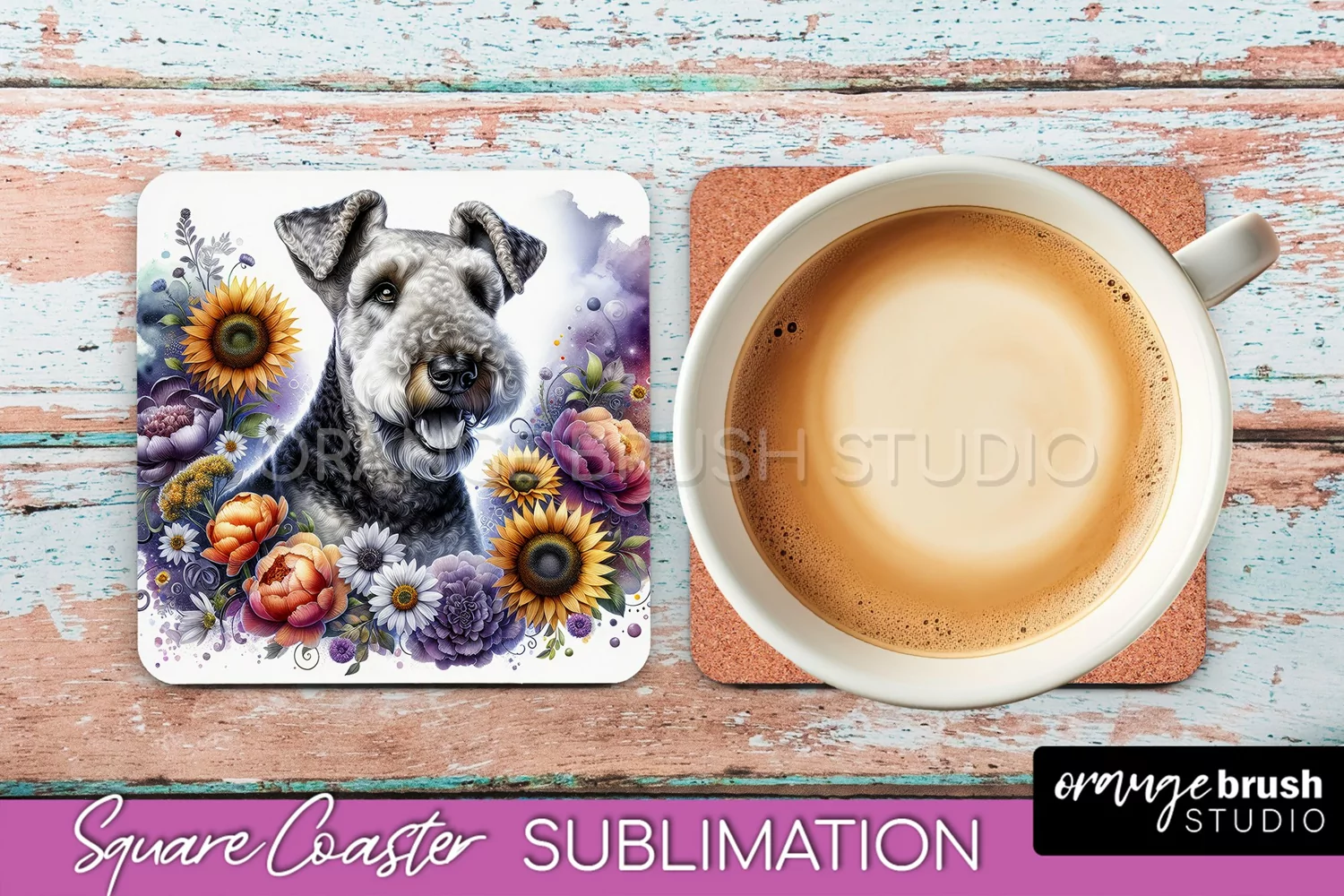 Airedale Terrier Square Coaster Dog Sublimation Floral PNG