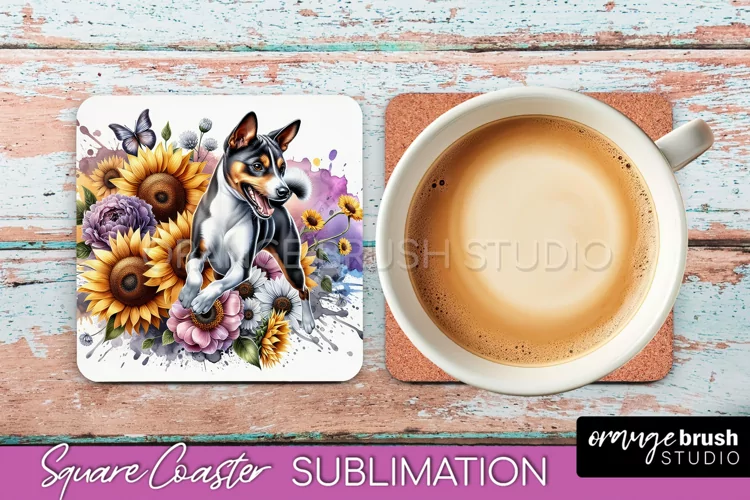 Basenji Square Coaster Dog Sublimation Floral PNG