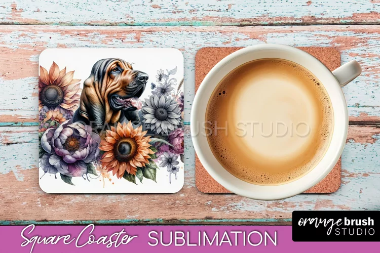 Bloodhound Square Coaster Dog Sublimation Floral PNG