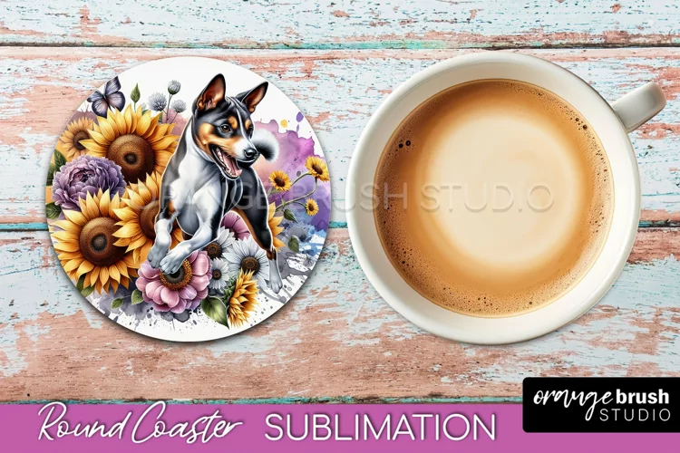 Basenji Round Coaster Dog Sublimation Floral PNG