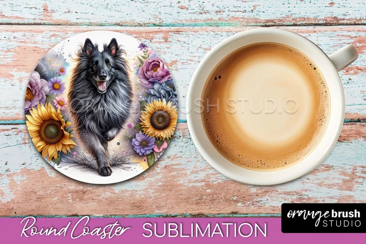Belgian Tervuren Dog Coaster Floral Dog Sublimation Dog Breed Sublimation Dog Coaster Sublimation Dog Mom Coaster Dog Round Coaster Dog Lover Coaster Dog Breed Coaster