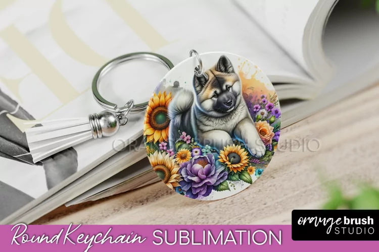Akita Dog Keychain Cute Dog Keychain Dog Mom Keychain Dog Breed Sublimation Dog Lover Keychain Dog Round Keychain Dog Keychain Sublimation Dog Breed Keychain Floral Dog Keychain