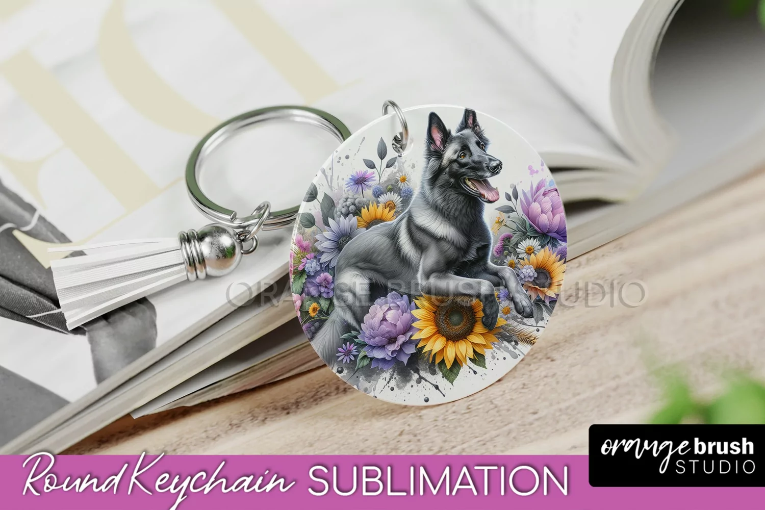 Belgian Malinois Keychain Dog Sublimation Floral PNG