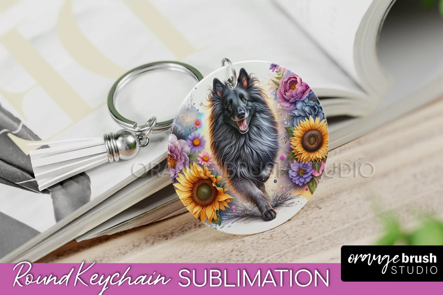 Belgian Tervuren Keychain Dog Sublimation Floral PNG