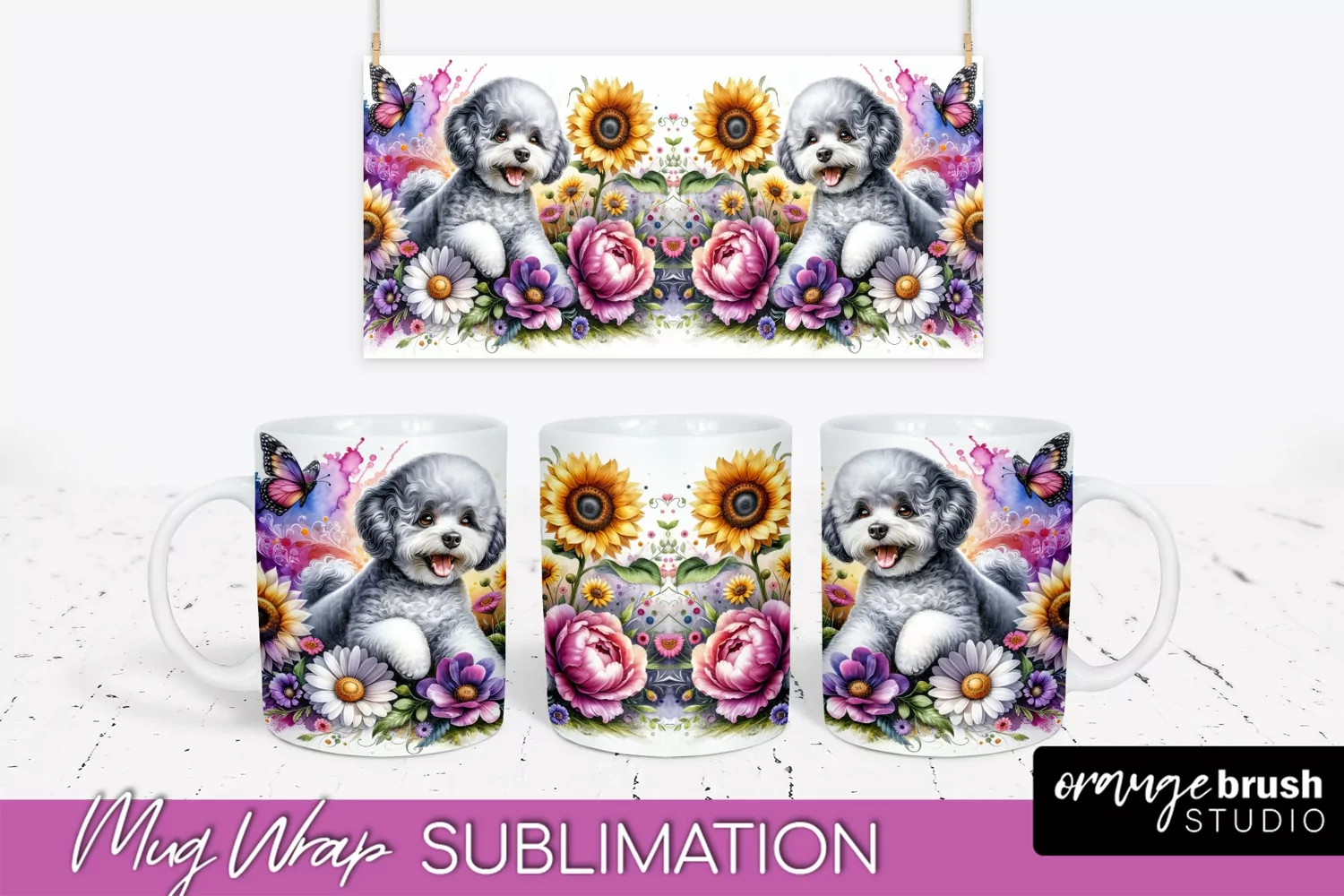 Bichon Frise Mug Wrap Dog Sublimation Floral PNG