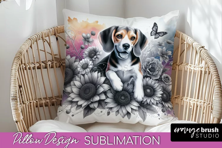 Beagle Pillow Cover Dog Sublimation Floral PNG