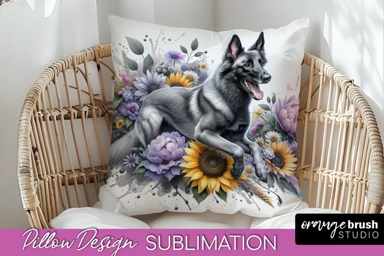 Belgian Malinois Pillow Cover Dog Sublimation Floral PNG