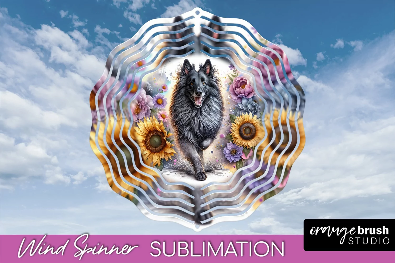 Belgian Tervuren Wind Spinner Dog Sublimation Floral PNG
