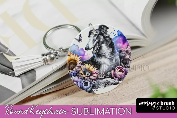 Borzoi Keychain Dog Sublimation Floral PNG example image 1