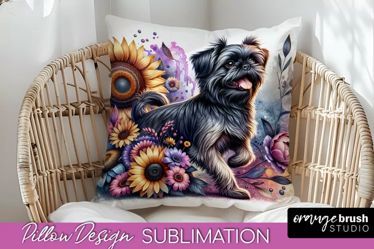 Brussels Griffon Pillow Cover Dog Sublimation Floral PNG