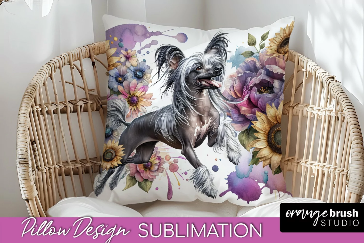 Chinese Crested Pillow Cover Dog Sublimation Floral PNG