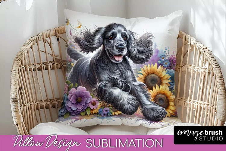 Cocker Spaniel Pillow Cover Dog Sublimation Floral PNG