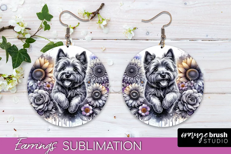 Cairn Terrier Earrings Dog Sublimation Floral PNG