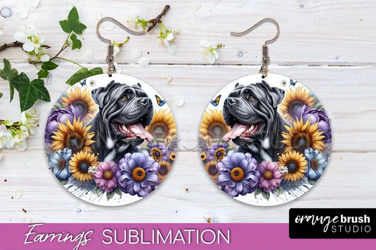 Cane Corso Earrings Dog Sublimation Floral PNG