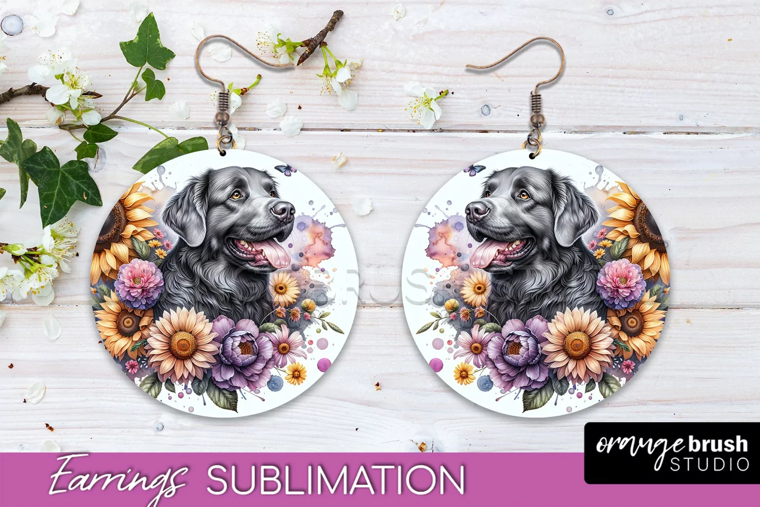 Chesapeake Bay Retriever Earrings Dog Sublimation Floral PNG